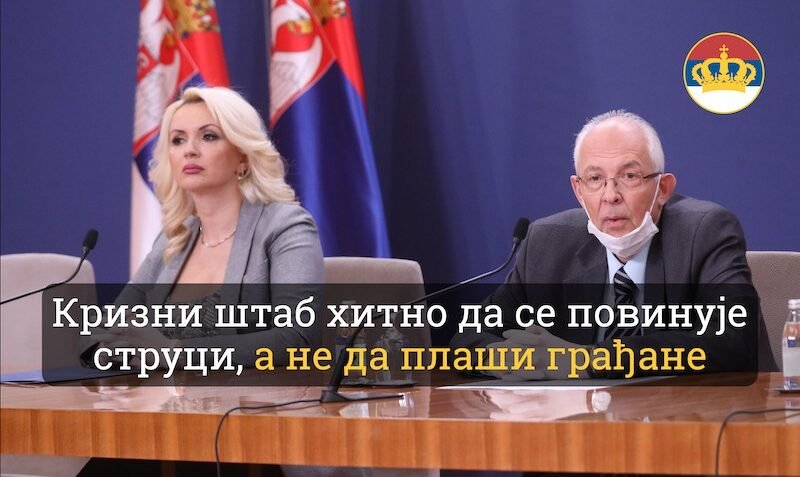 Коалиција „ЗА КРАЉЕВИНУ СРБИЈУ“, коју чине Покрет обнове Краљевине Србије (ПОКС), Монархистички фронт ЊКВ Принца Владимира Карађорђевића и Српски монархистички покрет, предлаже Влади Србије да се промени систем пријављивања за најављену државну помоћ од 100 евра по глави становника, тако да се изјасне сви којима ова помоћ није потребна.