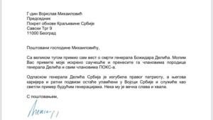 Саучешће Њ.К.В. Престолонаследника Александра Карађорђевића поводом смрти генерала Божидара Делића