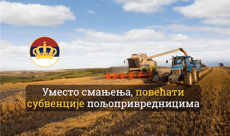 Покрет обнове Краљевине Србије (ПОКС) најоштрије осуђује одлуку Владе Србије да се у време епидемије корона вируса пољопривредницима смање субвенције.