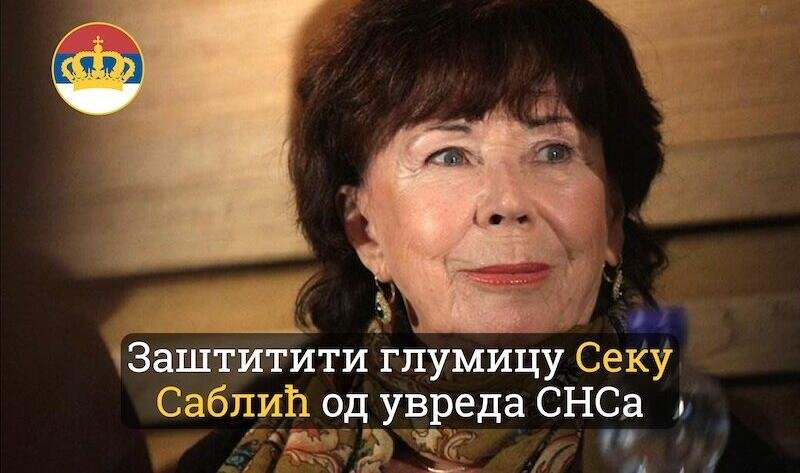 Покрет обнове Краљевине Србије (ПОКС) најоштрије осуђује увреде које је за скупштинском говорницом на рачун наше прослављене глумице Секе Саблић изрекао посланик СНС, Марка Атлагић.