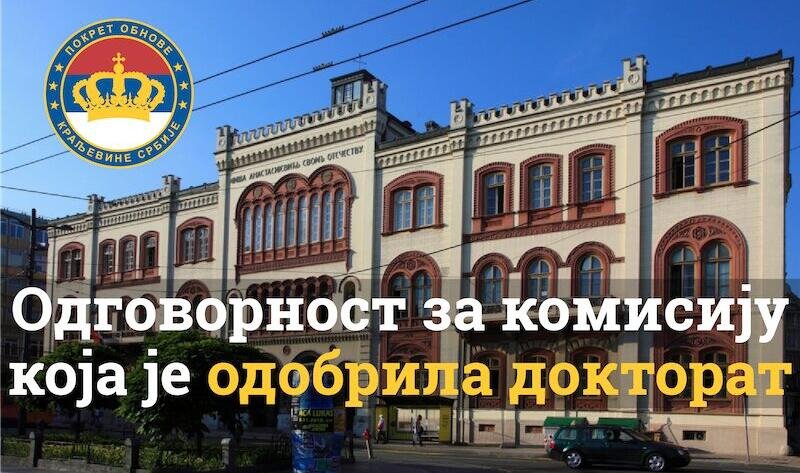 Покрет обнове Краљевине Србије (ПОКС) изражава чуђење како нико не тражи одговорност факултета и професора који су били у комисији за спорни докторат Синише Малог.