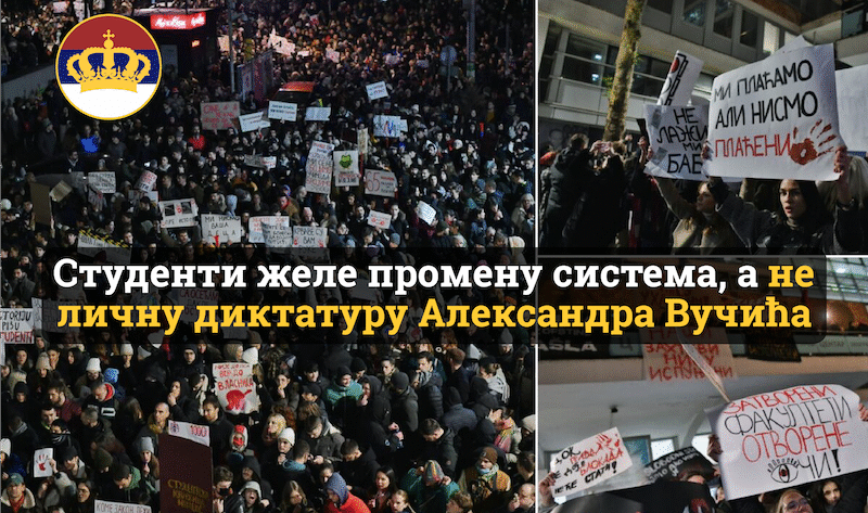 Покрет обнове Краљевине Србије (ПОКС) поздравља јасно саопштен став свих студентских организација да њихова борба није против неке личности, већ против система у којем се једна личност пита за све…