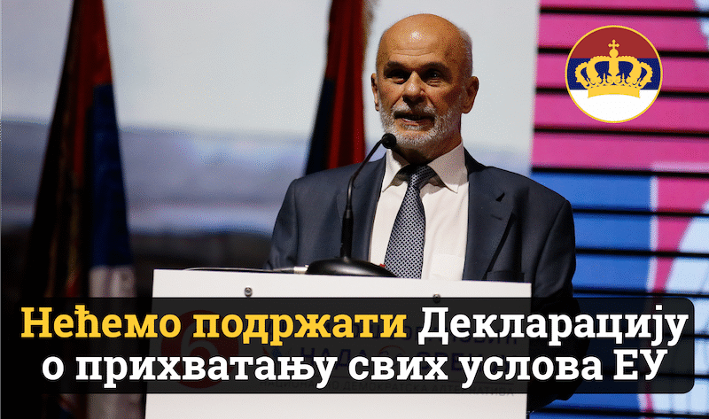 Покрет обнове Краљевине Србије (ПОКС) неће гласати за Декларацију о заједничкој будућности српског народа у Скупштини Србије, јер је она предложена да замаскира велеиздају која је на делу.