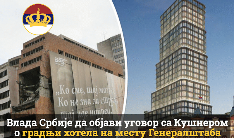 Покрет обнове Краљевине Србије (ПОКС) позива Владу Србије да без одлагања објави уговор којим је поклонила Џареду Кушнеру простор Генералштаба и простор првог административног и војног центра од Турака ослобођене…