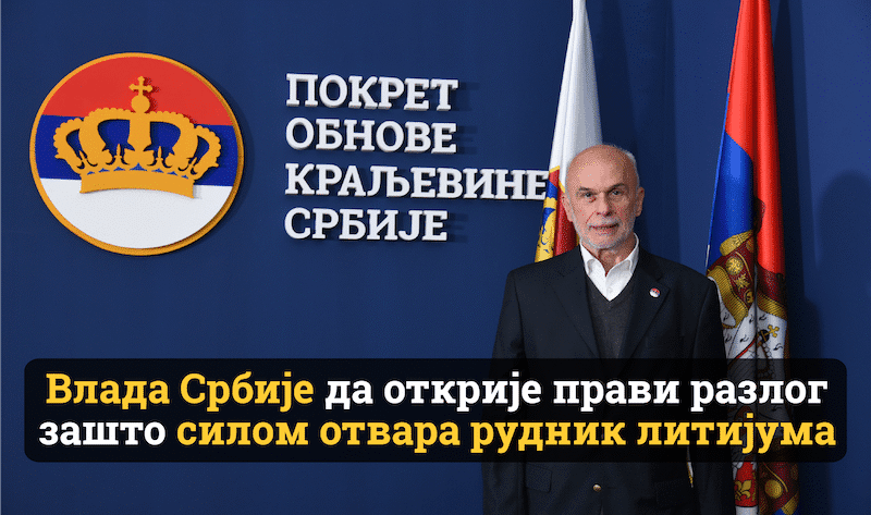 Покрет обнове Краљевине Србије (ПОКС) позива Владу Србије да донесе Уредбу којом ће бити забрањен извоз сировог литијума из Србије.