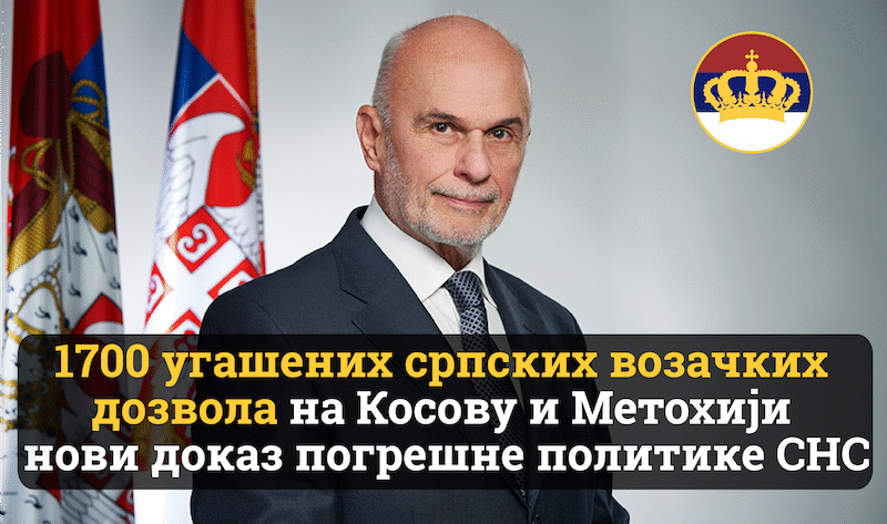 Покрет обнове Краљевине Србије (ПОКС) оцењује да је гашење 1700 српских возачких дозвола на Косову и Метохији у години у којој је и укинута граница између тзв. „Републике Косово“ и…