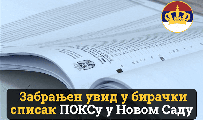 Покрет обнове Краљевине Србије (ПОКС) затражио је од градске управе у Новом Саду увид у бирачки списак уз присуство њихових запослених лица у администрација и добио је одбијеницу.