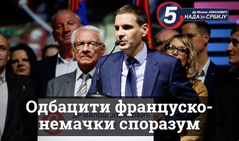 Српска коалиција НАДА коју чини Нови ДСС и ПОКС је за одбацивање француско-немачког споразума.
