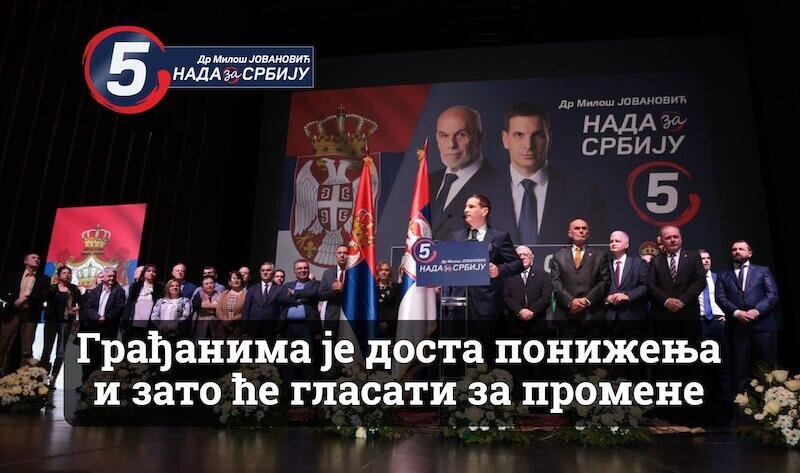 Српска коалиција НАДА коју чини Нови ДСС и ПОКС добиће подршку грађана којима је доста понижења, издајничке политике, лоповлука, бахатости и примитивизма ове власти.