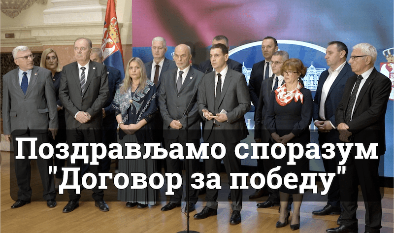 Српска коалиција НАДА коју чини Нови ДСС и ПОКС поздравља потписивање споразума „Договор за победу“ једног дела опозиције, којим се отварају врата сарадњи опозиционих странака у борби за фер и…