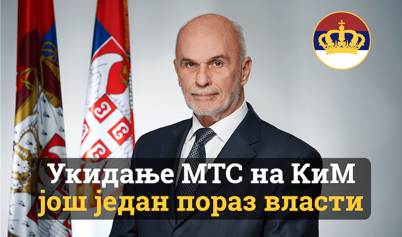 Покрет обнове Краљевине Србије (ПОКС) сматра да је укидање МТС на Косову и Метохији најпластичнији пример куда води политика актуелне власти.