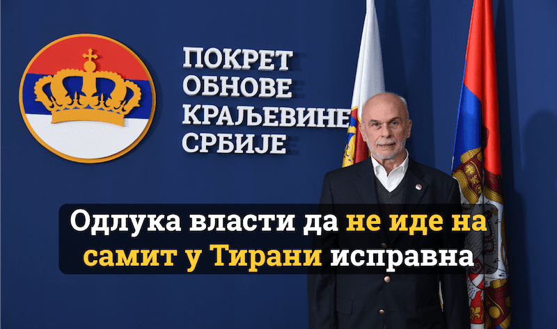 Покрет обнове Краљевине Србије (ПОКС) поздравља одлуку Владе Србије да не иде у Тирану на предстојећи самит ЕУ о Западном Балкану.