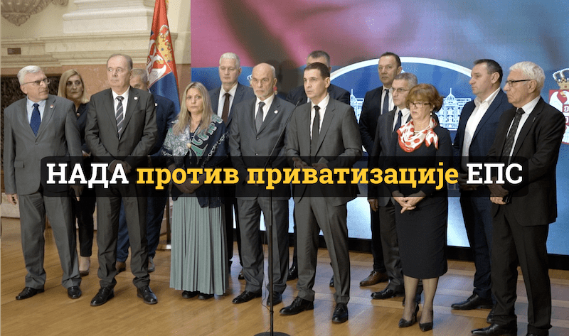 Српска коалиција НАДА коју чини Нови ДСС, ПОКС и 25 удружења грађана противи се приватизацији ЕПС јер би то угрозило електроенергетски систем наше земље.