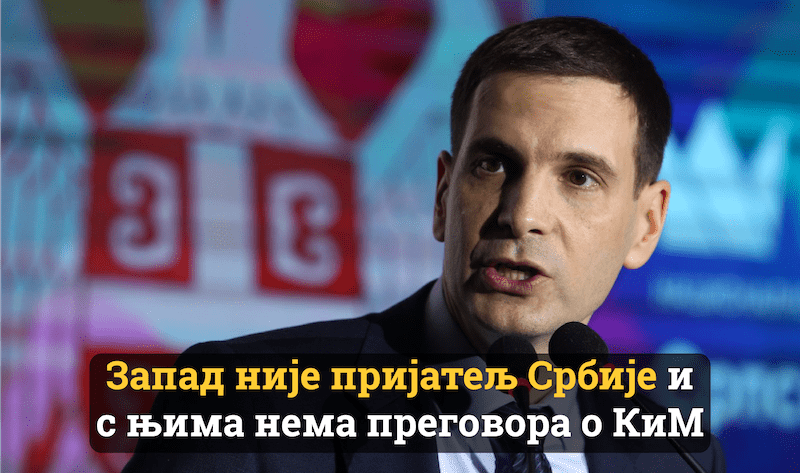 Председник Нове Демократске странке Србије и један од лидера Српске коалиције НАДА (Нови ДСС- ПОКС) Милош Јовановић изјавио је данас да Запад није пријатељ Србије и са њима не треба…