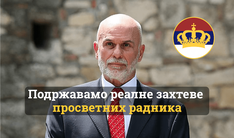 Покрет обнове Краљевине Србије (ПОКС) подржава најављени протест просветних радника и позива Министарство просвете, науке и технолошког развоја да изађу у сусрет просветарима.
