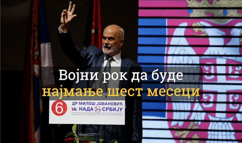 Српска коалиција НАДА коју чини ДСС, ПОКС Војислава Михаиловића и 25 удружења грађана подржава предлог о враћању обавезног војног рока, али да не буде краћи од шест месеци.