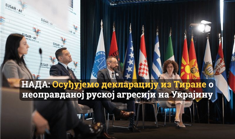 Српска коалиција НАДА коју чини ДСС и ПОКС Војислава Михаиловића осуђује јучерашње потписивање декларације о неоправданости војне интервенције Русије у Украјини коју су прихватили званичници Србије на састанку у Тирани…