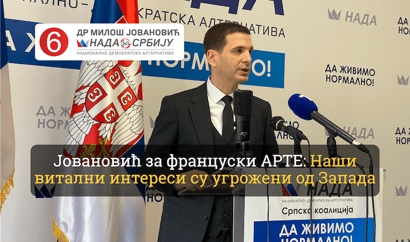 Кандидат за председника Србије испред Српске коалиције НАДА коју чине ДСС, ПОКС и 25 удружења грађана, др Милош Јовановић изјавио је за француско- немачку телевизију АРТЕ да постоје бројне препреке…