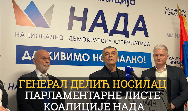 Генерал Божидар Делић биће носилац листе Српске коалиције НАДА на предстојећим парламентарним изборима, саопштено је на конференцији за новинаре у седишту Покрета обнове Краљевине Србије (ПОКС).