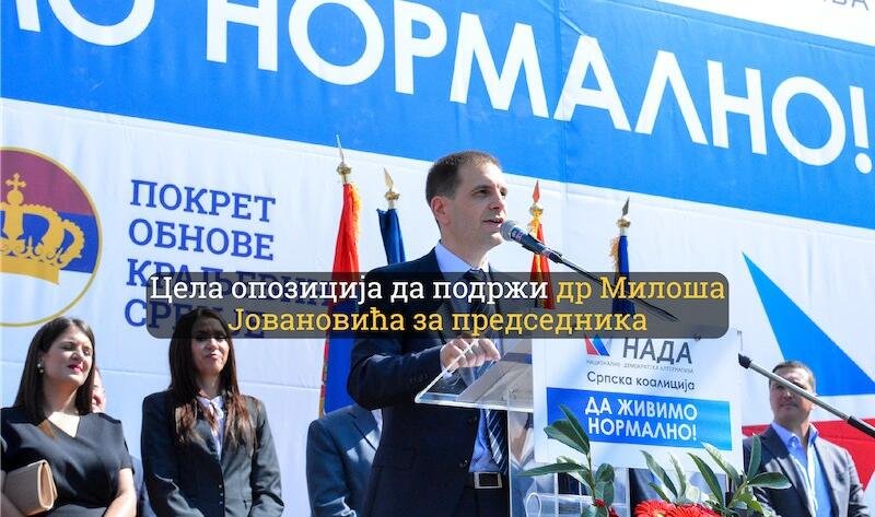 Српска коалиција НАДА коју чини ПОКС, ДСС и 25 покрета, странака и удружења и група грађана позива све опозиционе странке да подрже кандидата за председника Србије, др Милоша Јовановића.