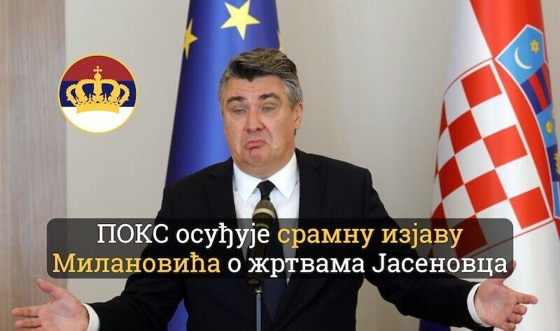 Покрет обнове Краљевине Србије (ПОКС) осуђује скандалозну изјаву председника Хрватске Зорана Милановића, који је јавно покушао да релативизује и умањи један од највећих злочина у историји, почињен према српском народу…