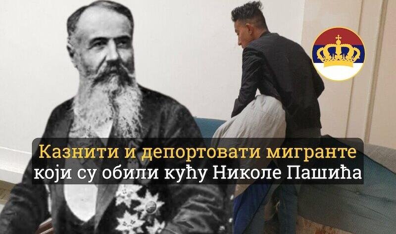 Покрет обнове Краљевине Србије (ПОКС) позива тужилаштво и судство да хитно казни мигранте који су обили кућу Николе Пашића у Београду.