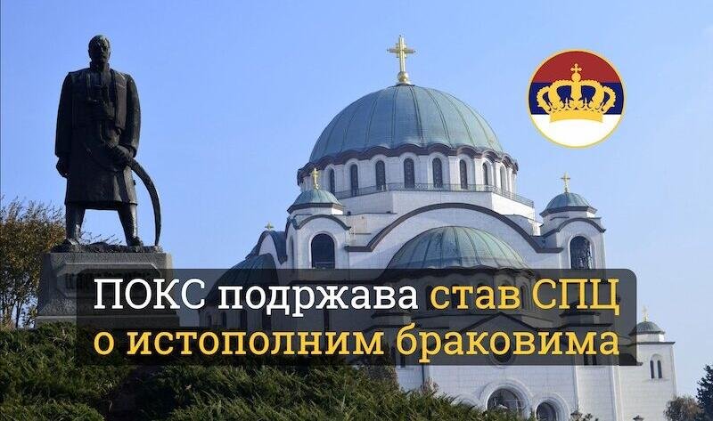 Покрет обнове Краљевине Србије (ПОКС) подржава став Српске Православне Цркве, која се противи усвајању закона о истополним заједницама. Противимо се усвајању овако важног закона на брзину, без широке јавне расправе…